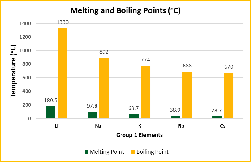 This section explores the trends in some atomic and physical properties of the Group 1 elements , also known as alkali metals – lithium, sodium, potassium, rubidium, and caesium.